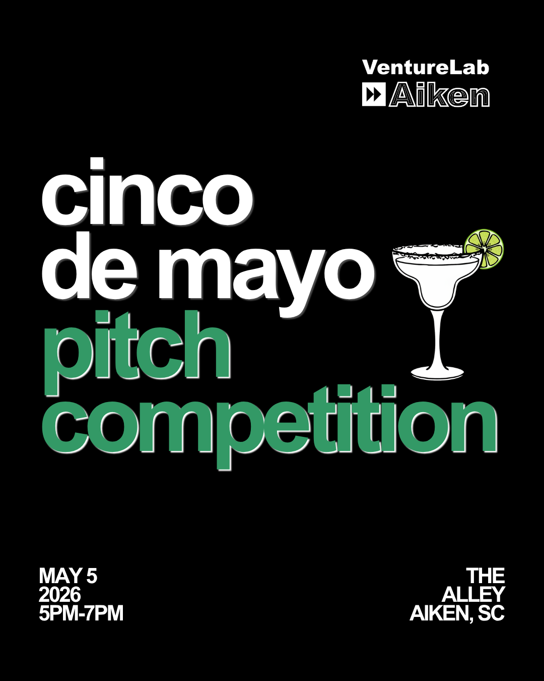 Live startup pitches, great energy, $5,000+ in prizes, and a chance to win a spot in the Venture Lab Aiken Summer Cohort.
